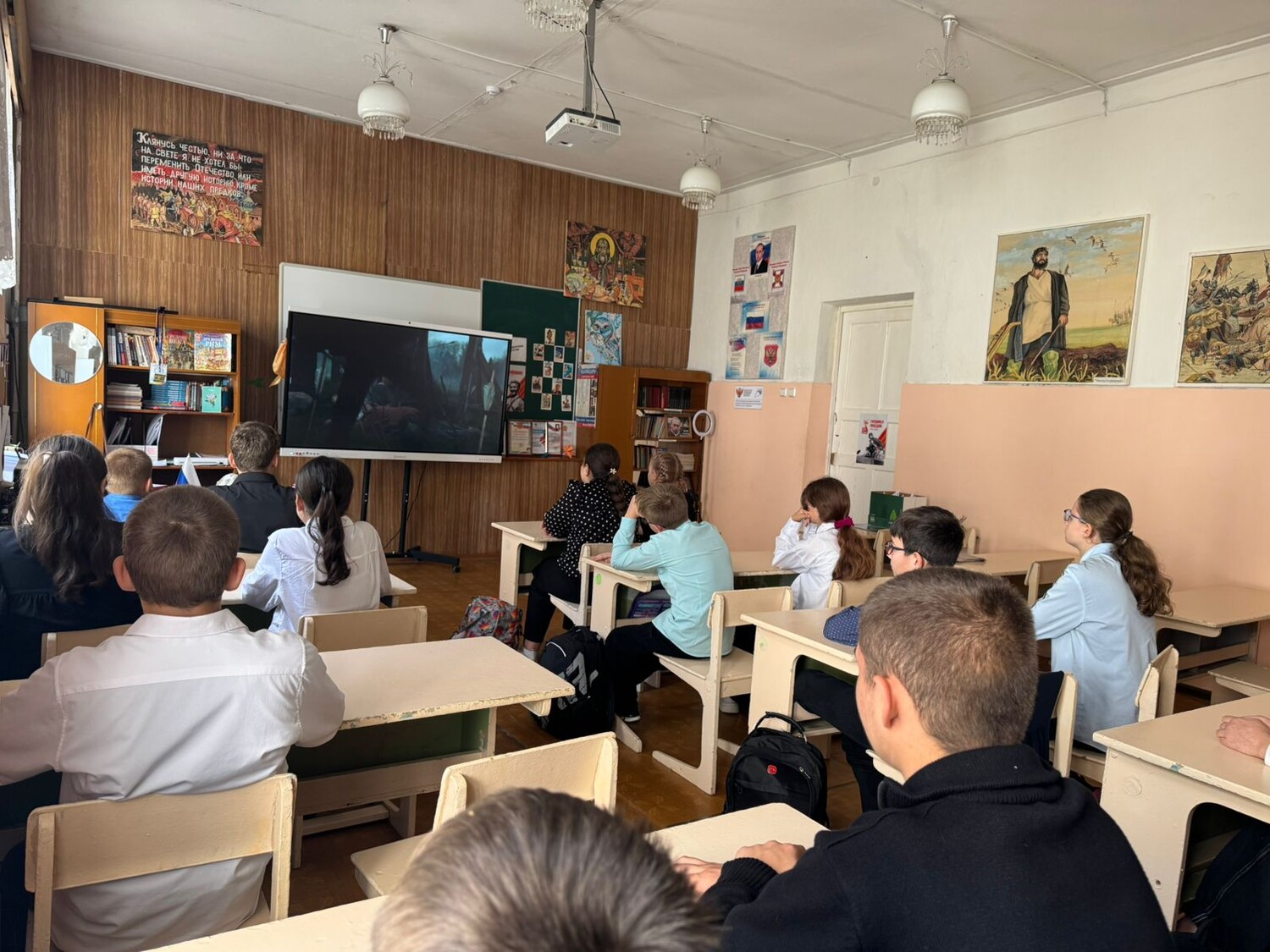«В рамках реализации Всероссийского проекта «Киноуроки в школах России» 14 сентября 2024 г. обучающиеся 7-9 классов вместе с Теребиновой Валентиной Руслановной, советником директора по воспитанию, просмотрели фильм "Отыщи моё сердце". Фильм раскрывает понятие - любовь к природе